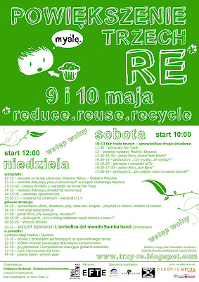 Powymieniajmy się! W międzyczasie odbywać się będą warsztaty Do It Yourself --> łatwe, proste, tanie przerabianie, a także warsztaty rękodzieła, przygotowane przez licealistów z Bednarskiej. Wszystkie te wydarzenia spełniają założenia Trzech Re (Reduce, Reuse, Recycle)